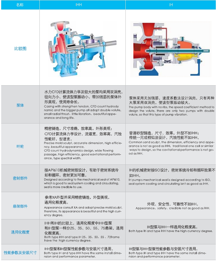 IHH与IH型泵结构比较