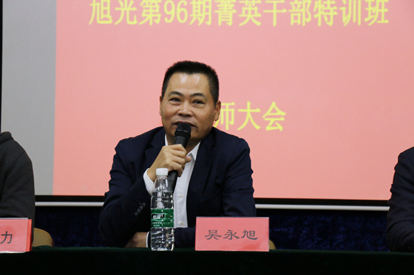 本期培训班由来自集团总部及南通公司的42名行政和生产系统管理人员及储备人员组成,公司各级领导对此次培训非常重视。于11月26日下午召开了誓师大会,大会由人力资源中心副总监吴三江主持,集团董事长兼总裁吴永旭、生产副总裁叶甲辰、董事长助理兼物资中心总监吴俊力、制造中心总监代生学出席大会并作了重要讲话。