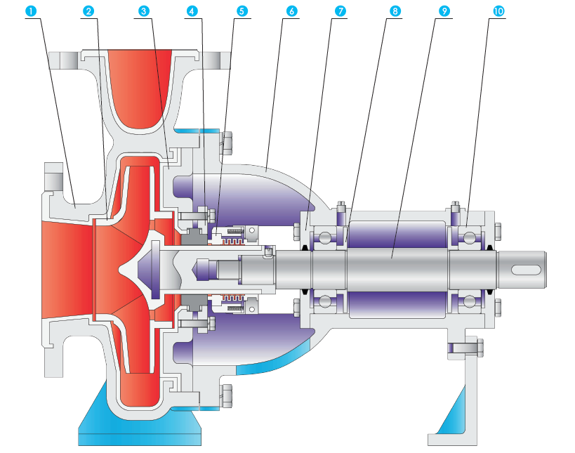 后开门结构,可在不拆卸泵进出口管道的情况下将叶轮或轴封部件从泵体内移出,检修维护方便。